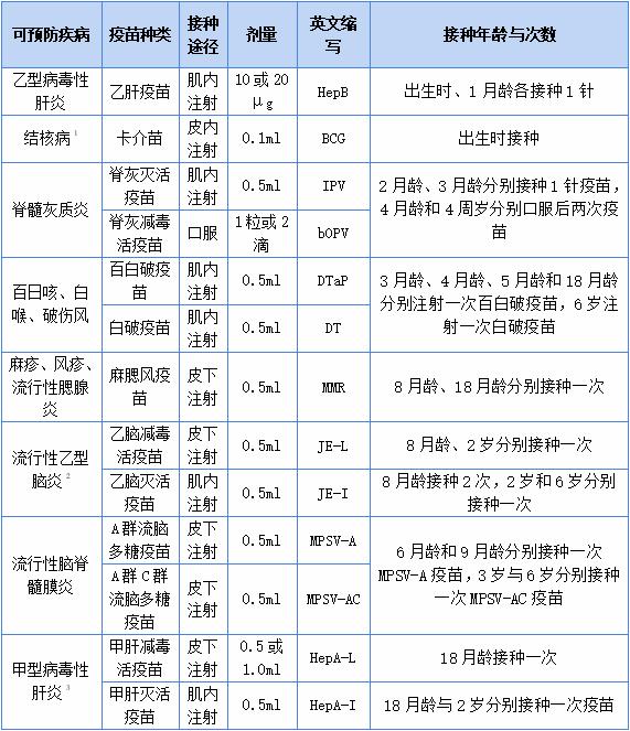 国家免疫规划疫苗儿童免疫程序表(2021年版)