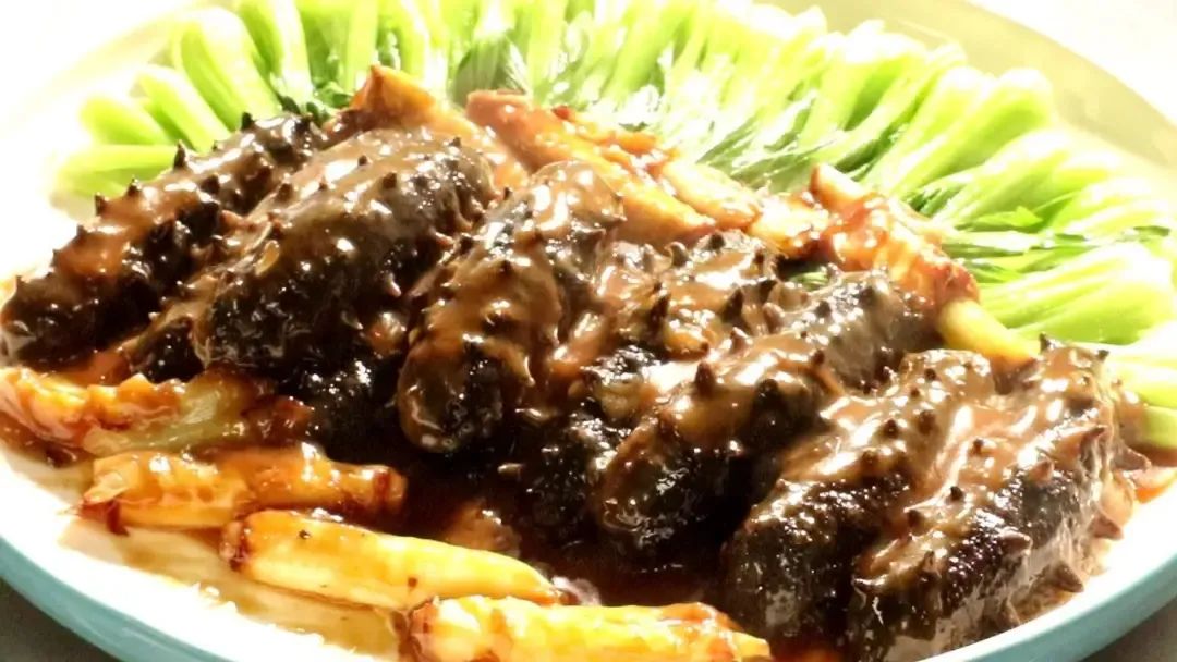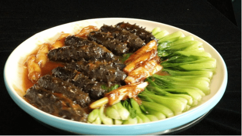 葱烧海参是威海传统地方菜中的标志性菜肴,常用做宴席的“头菜”(热菜的第一道菜品),有“海参席”之说。