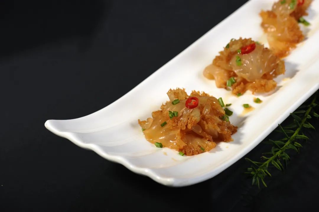 蛰头脆嫩,醋香浓郁,爽口开胃。这道菜不仅营养丰富,还含有大量的维生素、蛋白质和脂肪,有助于降低血压,润肠通便。