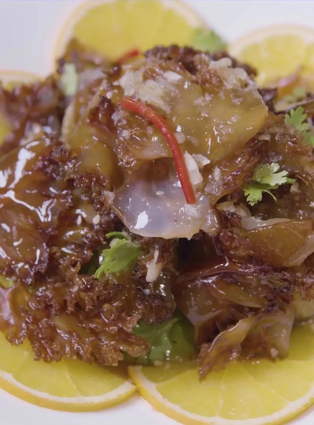 在威海,如果想选一道清爽的开胃菜,非老醋蛰头莫属。老醋蛰头是胶东美食的代表菜之一,因其一口咬下便能发出“嘎吱嘎吱”的响声,再加上陈醋和蛰头混合而成的浓郁鲜气,令人难以忘怀。