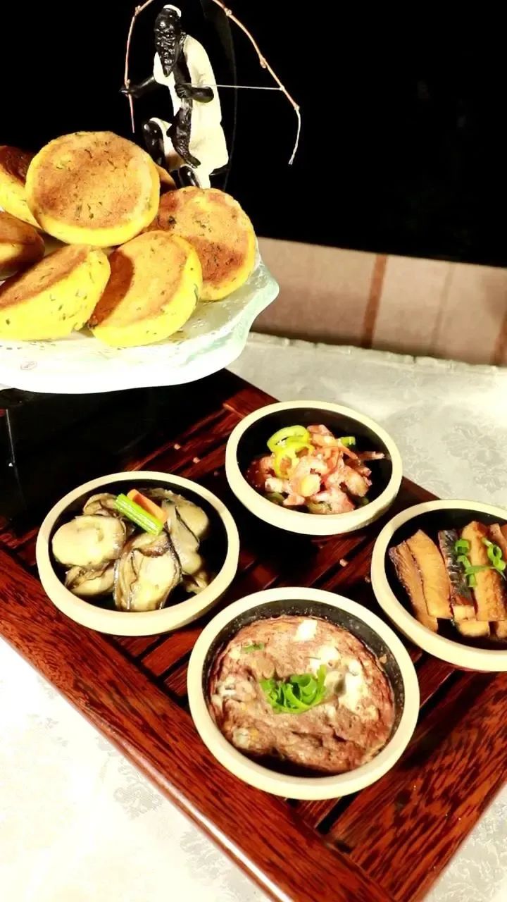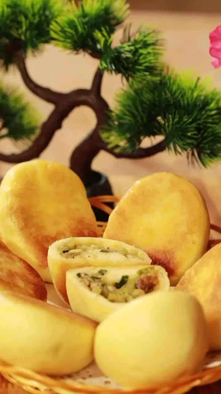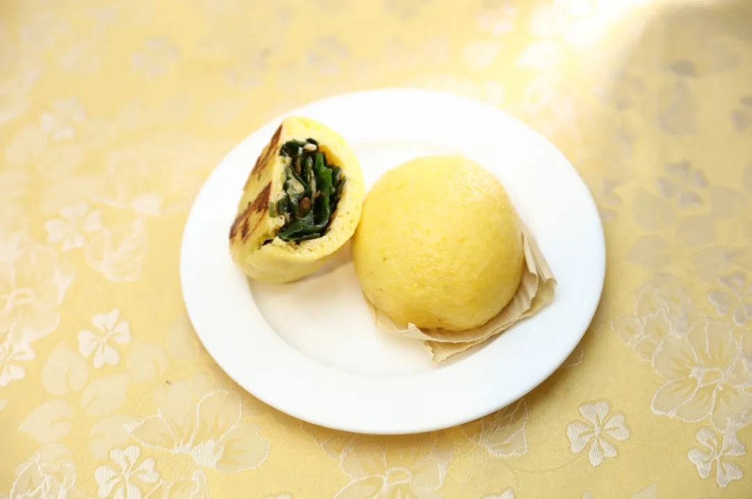 菜粑粑是威海传统风味家常面点,色泽淡黄,口感绵软,健脾益气,清香鲜美,口味适中,对于威海人而言是菜与面的美味终极结合体。