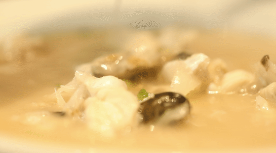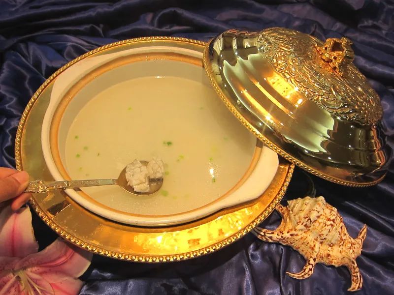 河豚的烹调方法有很多种,如清炖、红烧、生吃、椒盐、煲粥等。清炖河豚鱼,适时投入的一点盐,一点胡椒,微妙把控着美味舒展的进程,一步步唤醒汤汁丰润醇厚的味道。河豚汤中鱼肉丰腴鲜美,鱼皮香糯弹牙,汤汁洁白如乳,正是一团鲜香口难言。