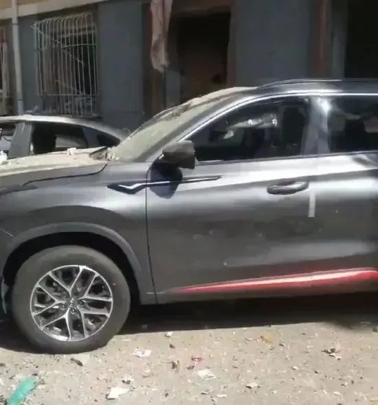 事故发生地系一栋居民楼,不少窗户都被震碎甚至变形。不仅如此,居民楼底层的商户也“遭了殃”,招牌随处散落到地面上。除此之外,停在楼下的不少轿车也受到了波及。