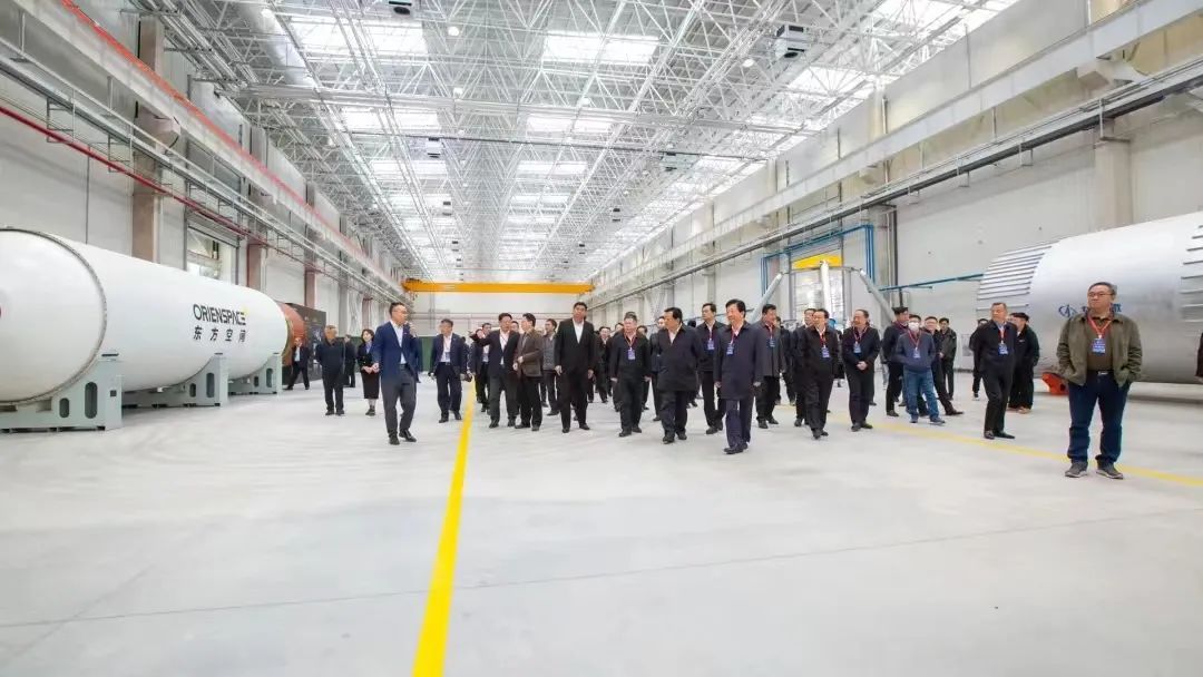 东方空间联席CEO向东方航天港产业发展大会与会嘉宾介绍“引力-1号”产品图源:微信公众号“东方空间ORIENSPACE”