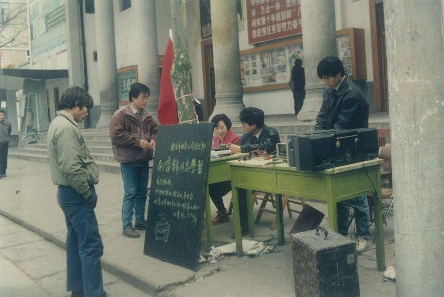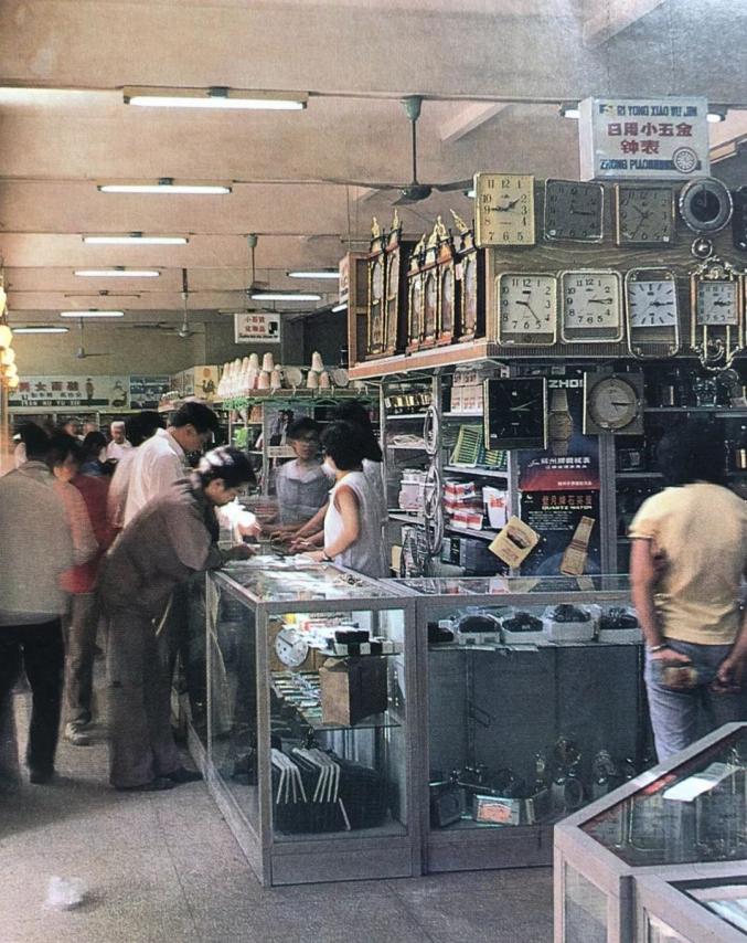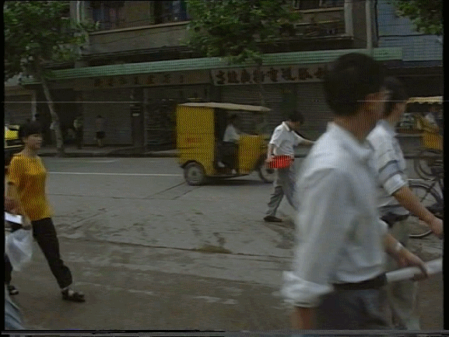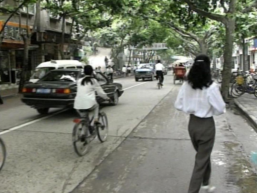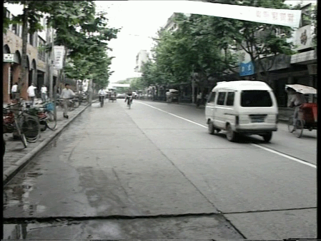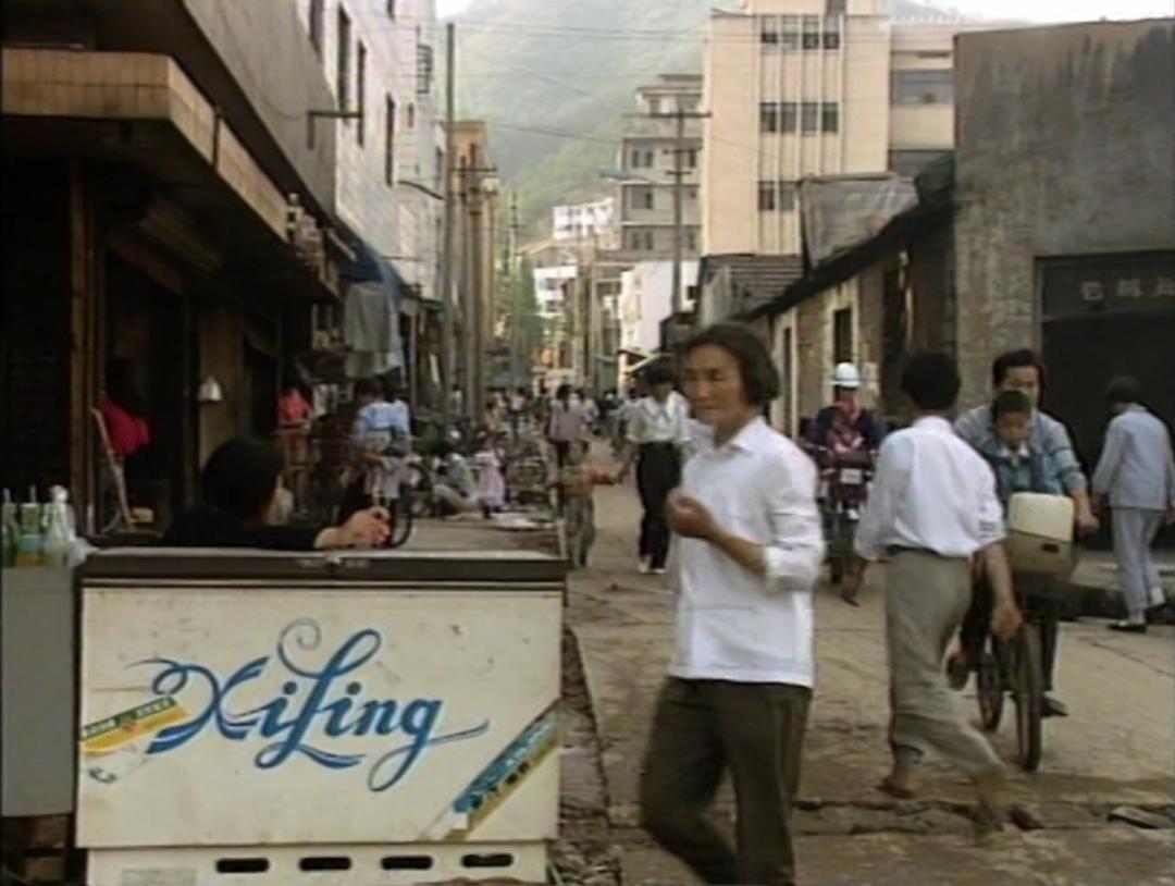 △坐着黄包车、三轮车、自行车穿梭在新安江街头