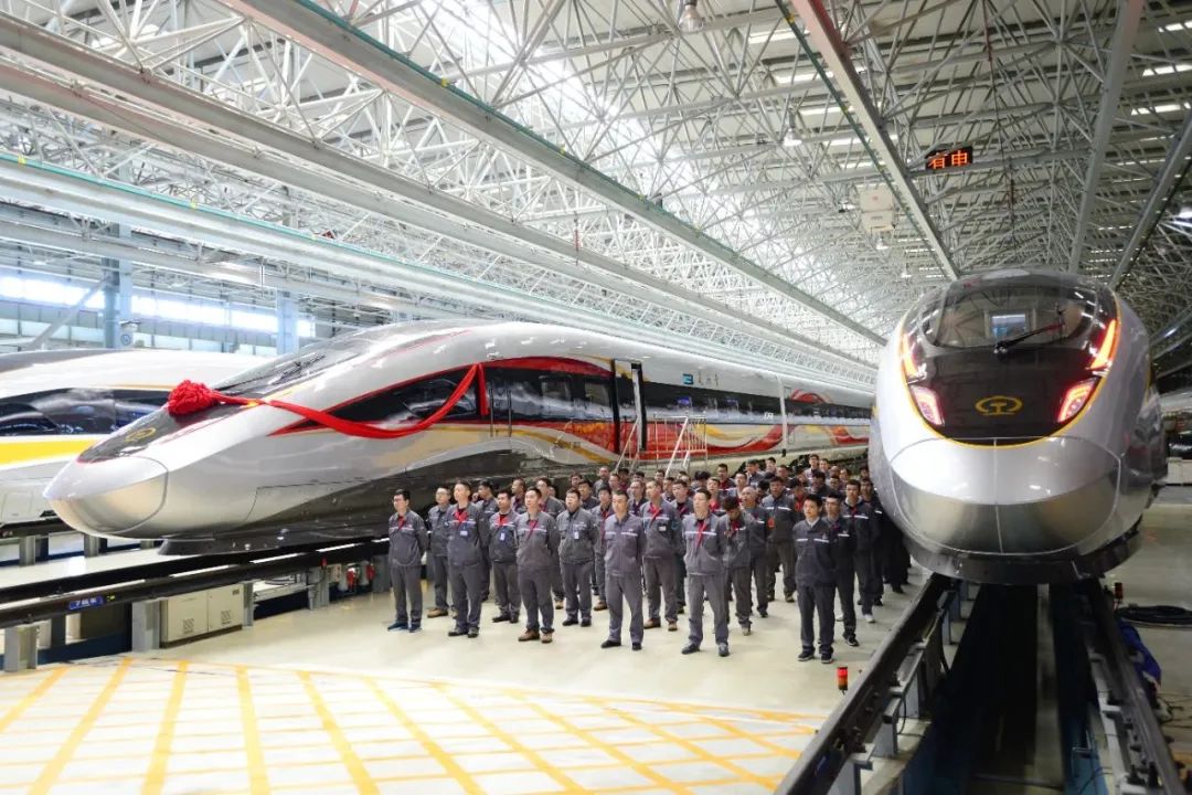 近日,济青高铁时速350公里复兴号智能动车组在中国中车下线,投入到五一假期的客运服务,为旅客提供了更加智能舒适的乘车体验。