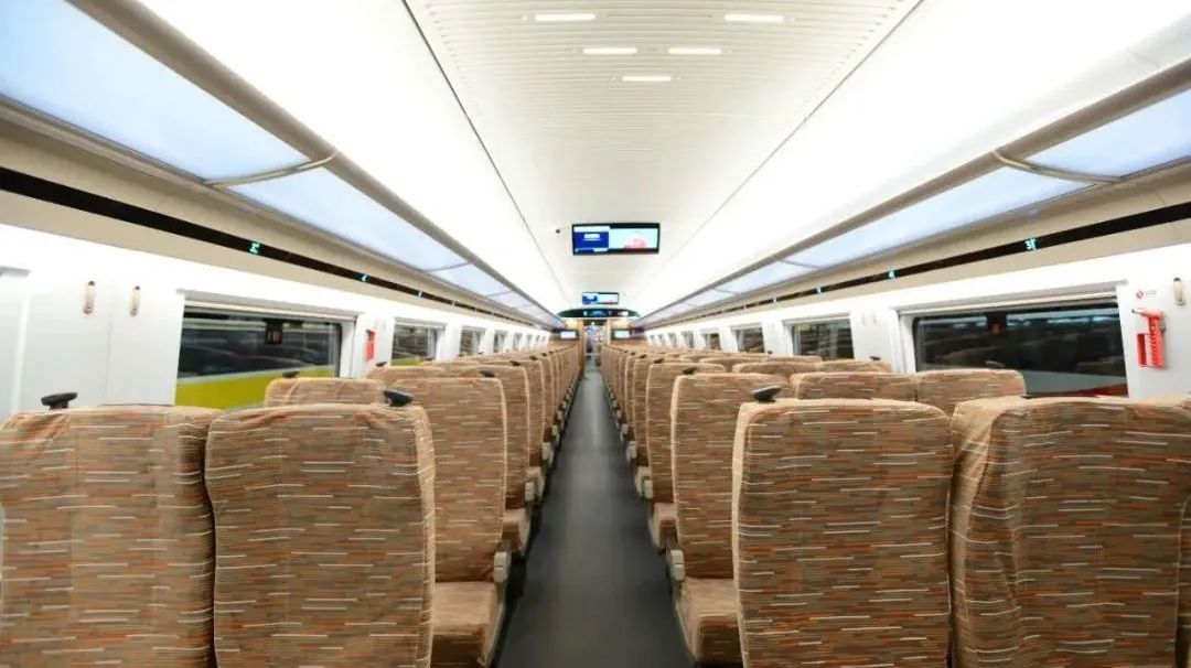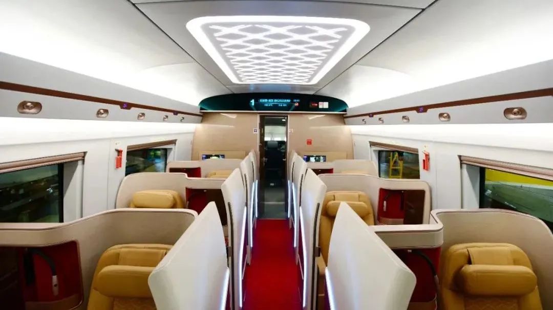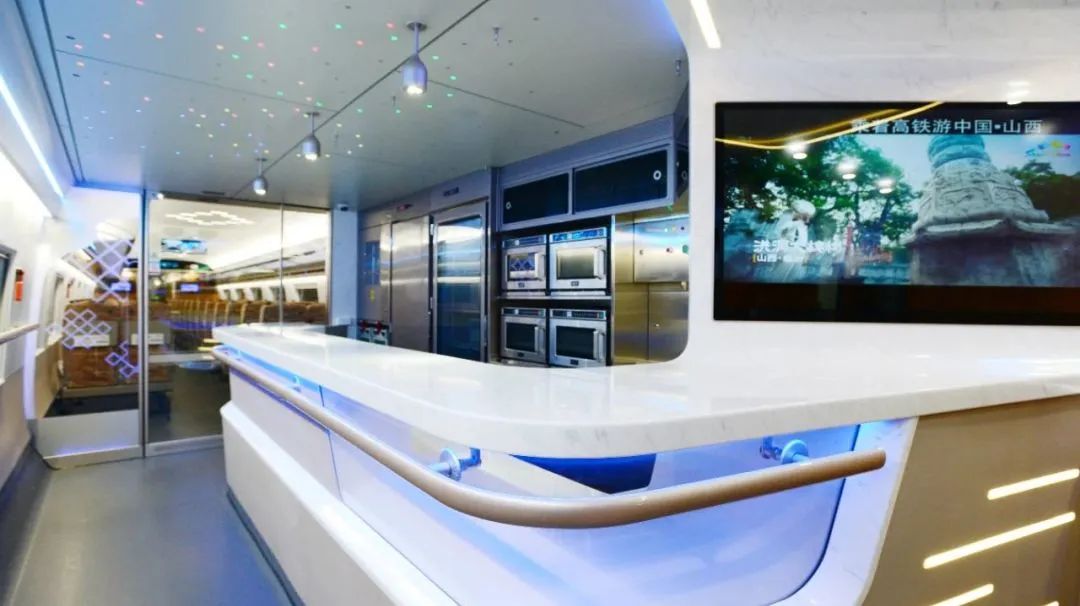 列车设置5G+WiFi网络,优化旅客信息娱乐系统,提供休闲娱乐、交互体验、信息共享、手机投屏等功能,同时提升乘坐私密性和舒适性。除此之外,列车还能够根据车内外环境自动调节温度和内外压力差,同时设有开放式餐吧区,为旅客提供便捷、贴心的智能服务。