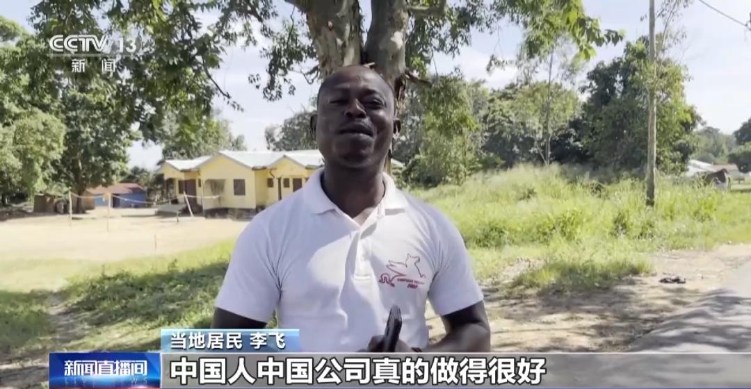 当地居民 李飞:中国人、中国公司真的做得很好,我是发自内心地感激他们。以前真的很困难,我的蔬菜水果要两三周才能运到布拉柴维尔,很多都会变质。现在路况这么好,我的生意也变好了。现在我还建了自己的房子,还有了自己的车。谢谢!谢谢!非常感谢中国。
