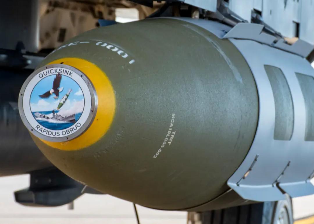 在毁伤效能方面,当前反舰导弹对比鱼雷来说,不论是采用掠海攻击还是采用贯顶攻击,它都是以毁伤舰船的上层建筑为主,并不容易实现单发命中即彻底摧毁目标舰的理想作战效果,特别是当前水面舰艇的水密隔舱设计、不断加强的损管和救援能力等。图为F-15挂载的AGM-84“鱼叉”。反观“快沉”,此前AFRL宣称目前WOSA导引头每个套件的成本约为20万美元,如果转入大批量生产,成本有望控制在5万美元左右。再算上JDAM套件的几万美元、更为初始的Mk炸弹的几千美元,“快沉”的成本理论上就可以控制在10万美元以内,是鱼雷的十分之一,甚至几十分之一。