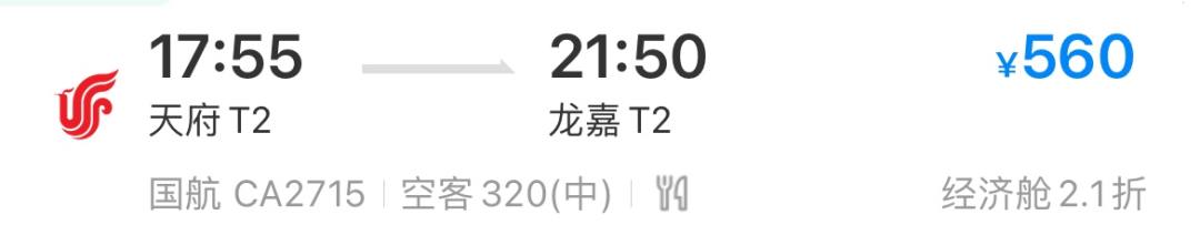 先从成都直飞长春机票低至2.1折