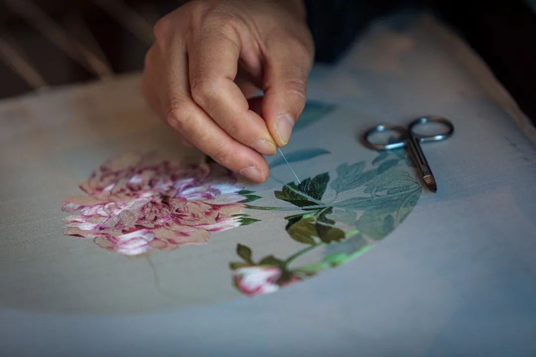苏绣的色彩,需要考虑绣布的材质和颜色 / 图虫创意苏绣的“光”,则展现出其最为灵动的一面。绣工常采用半光或全光的绣线,搭配丝绸和绸缎等高质感的织物,让绣品更加美轮美奂。随着角度和光线的变化,它们不仅闪烁着迷人的色彩,还有着丰富的层次,绽放出如幻如真的美丽,实在令人叹为观止。