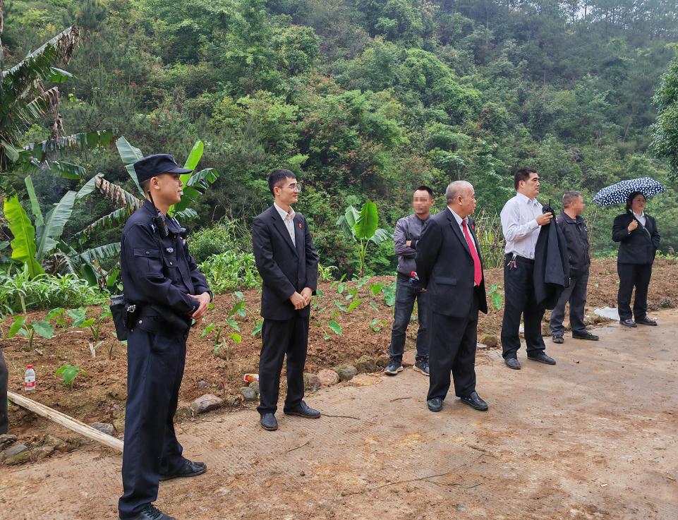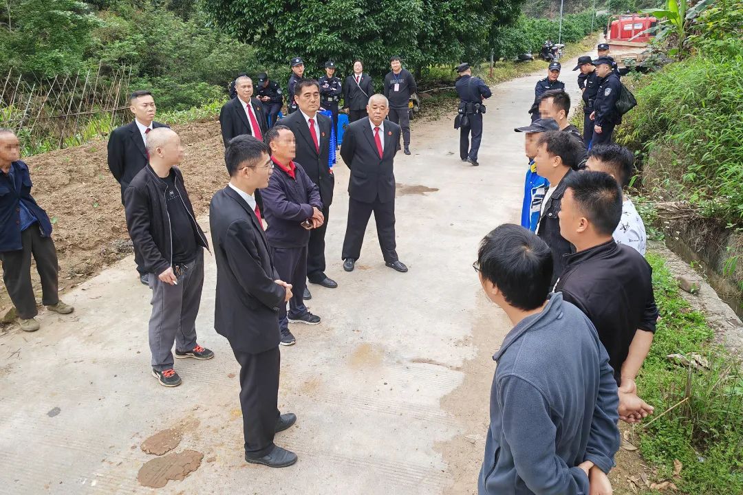 当天上午7点30分,蒙山县法院17名干警迅速集结登车赶赴执行现场。抵达现场后,执行干警迅速拉起警戒线,疏散围观村民,隔离出执行区域,负责清障的人员及车辆随即进场作业。
