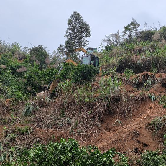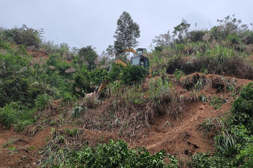 “轰隆隆……”六辆挖掘机有序进场,随着陡峭的山路前行,执行干警们紧随其后,爬山、下坡,历经五十分钟,终于抵达涉案林地现场,有条不紊地实施清场行动。执行过程中,周某情绪激动,意图阻挠,执行法官再三对其释明执行依据,表明执法态度,最终在强制执行期间将其驱离现场。