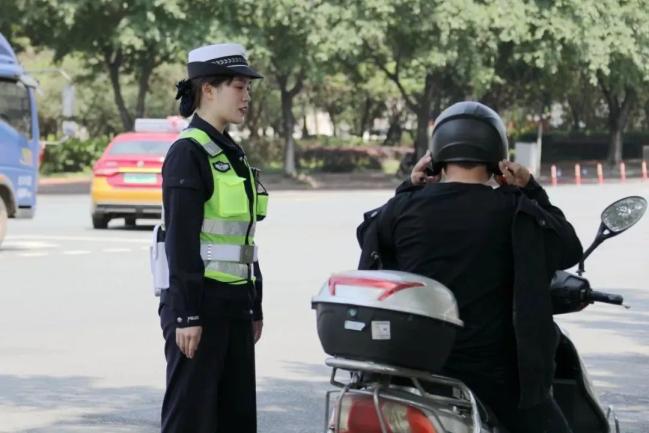 紧盯辖区内学校、单位、小区、厂区等重点区域,在上下班和节假日时段,加大力度查处查纠摩托车、电动自行车不佩戴安全头盔等违法行为;