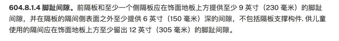 在美国的残疾人法案(Americans with Disabilities Act)里,就规定公共卫生间独立的单元门到地面之间需要留出 9 英寸(大约 23 厘米)的间隔,这个高度比国内的高了不少。