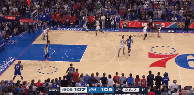 哈登是此役的关键先生——常规时间最后16秒的抛投将比赛拖进加时赛;加时赛最后19秒,哈登接到恩比德传球,命中底角三分,帮助76人116-115击败对手。