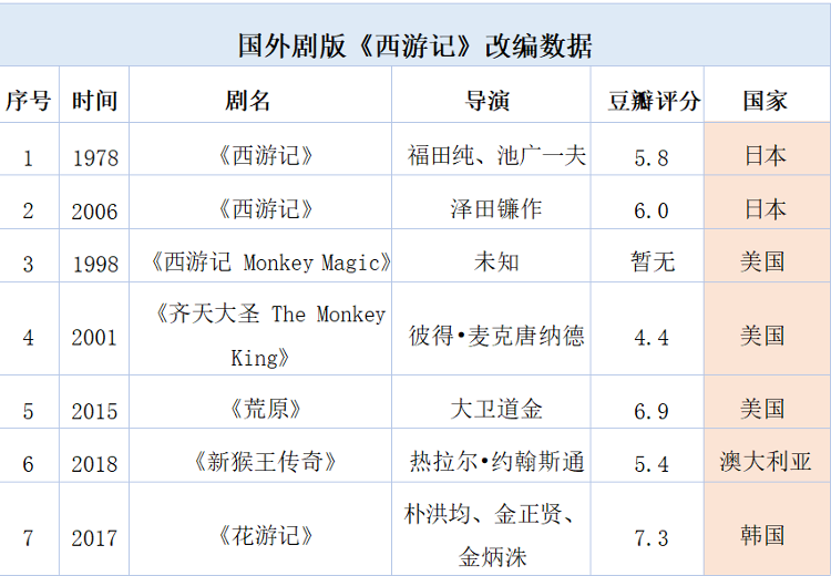 在美国,各大主流媒体诸如《纽约时报》《华盛顿邮报》《洛杉矶书评》《纽约书评》等发表了形式不同的介绍性文章,其中《纽约时报》从1930年到2015年间对西游故事的介绍,还有西游故事的各种艺术形式推介多达33篇,使得该故事在美国传播有着深厚的群众基础。1978年,为了庆祝中日邦交正常化,由日本国际放映制作的电视剧《西游记》播出,在日本、英国、澳大利亚以及新西兰等地都取得了不错的收视率,也让日本成为第一个将《西游记》搬上电视荧屏的国家,随后,韩国、美国等也纷纷加入改编热潮。
