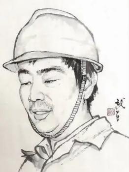 作者贺开伟肖像画。张武昌绘在位于河南郑州的中国中铁工程装备集团(简称中铁装备)盾构总装车间里,直径9.16米、相当于3层楼高、上百米长的盾构机已经进入调试阶段,将于5月迎来意大利客户验收。