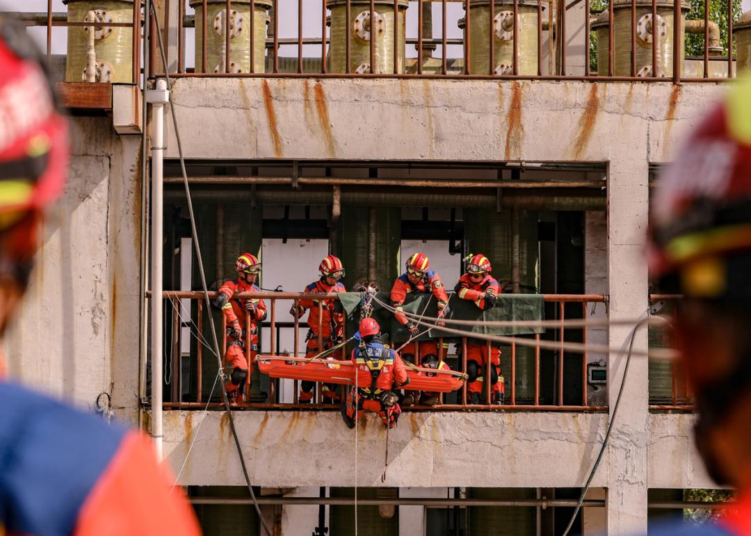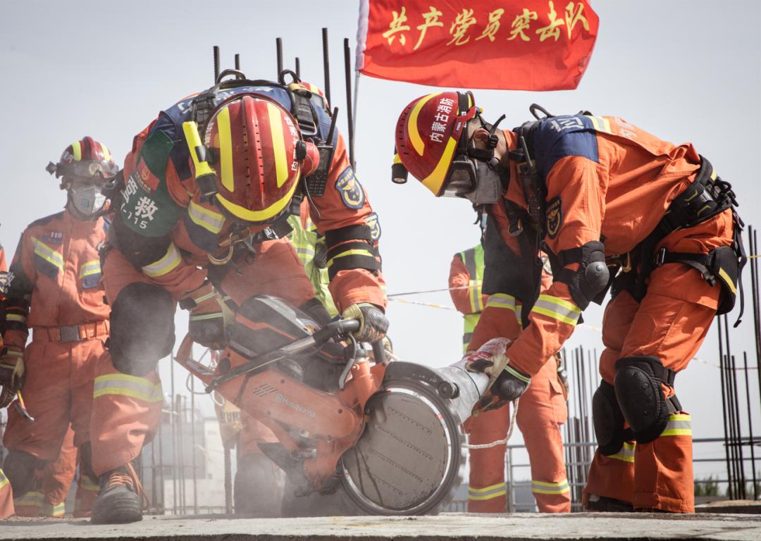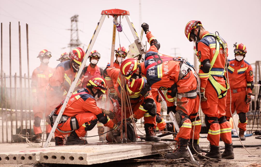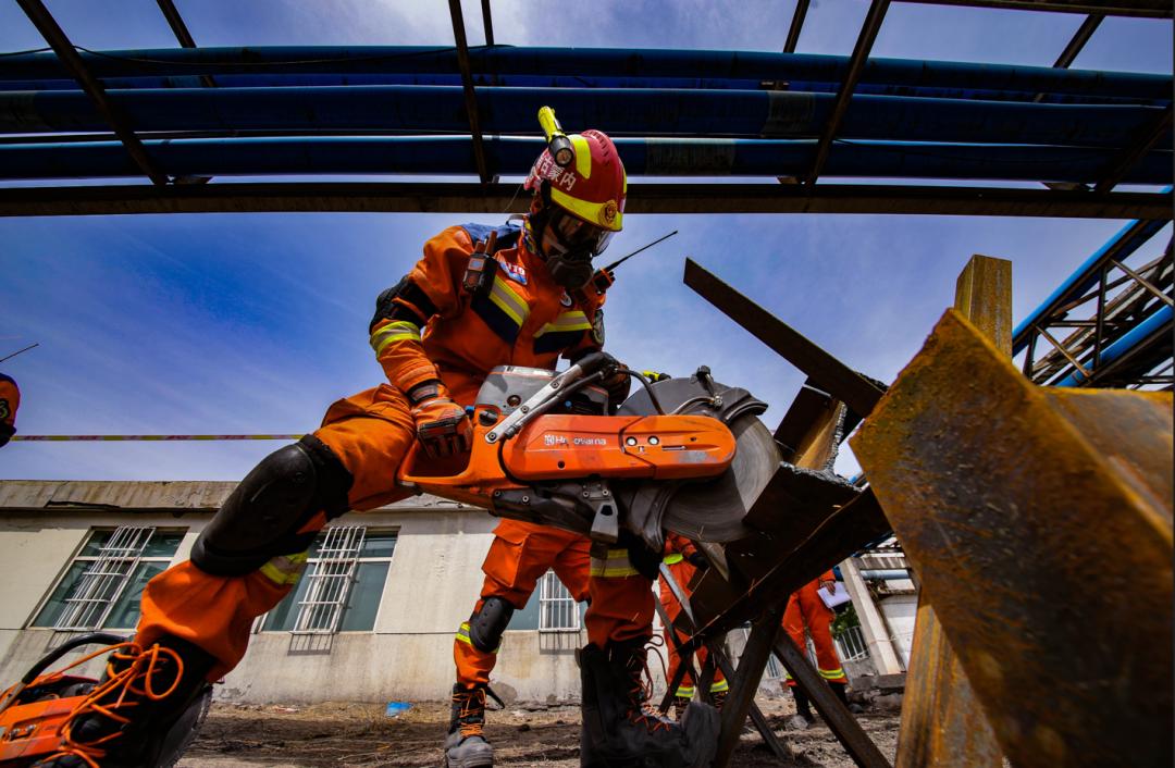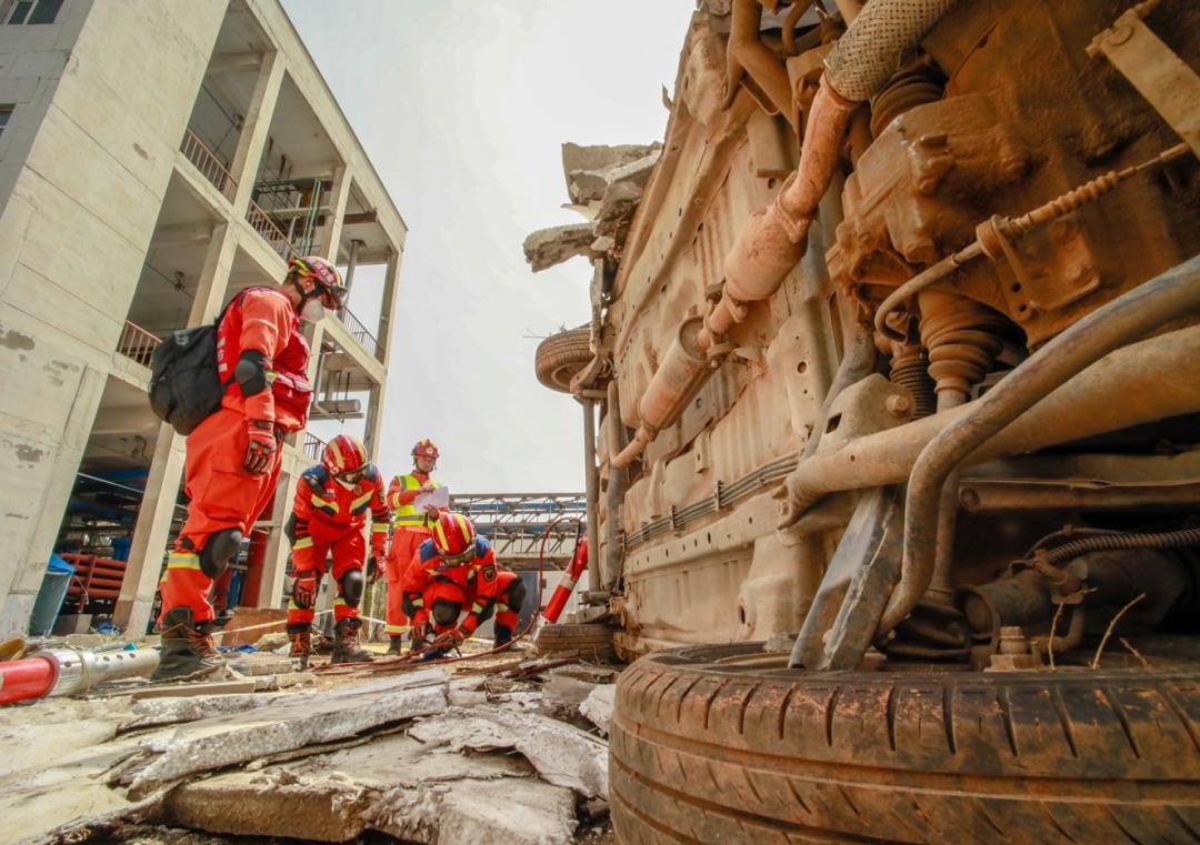 在演练现场,13支消防救援队伍严格按照任务分工分别开展了力量投送、携装徒步、行动基地搭建、废墟搜救、向上支撑破拆救援、T 型横渡绳索救援、重物移除安全破拆救援、车辆事故救援等十余项演练科目。