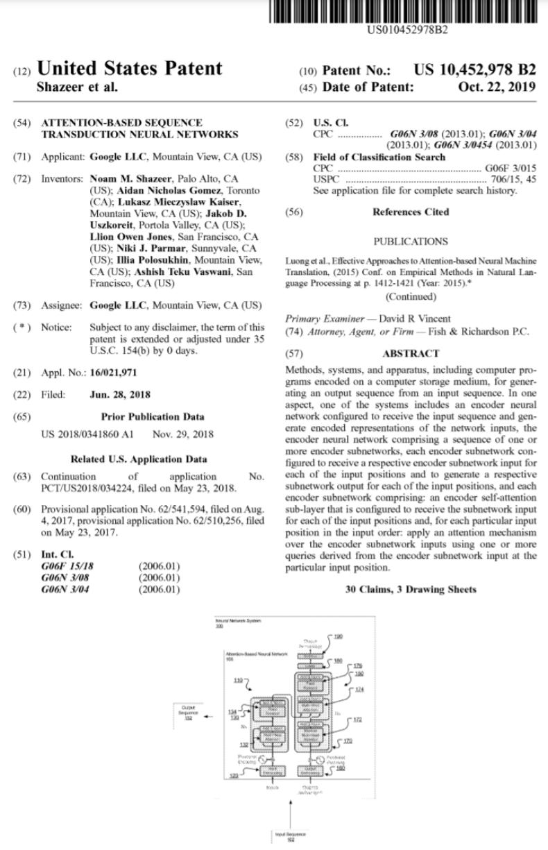 图源:https://patentimages.storage.googleapis.com/05/e8/f1/cd8eed389b7687/US10452978.pdf此外 OpenAI 发布的系列模型 GPT(Generative Pre-trained Transformer),名字中带有 Transformer,可见 Transformer 是 GPT 系列模型的核心。