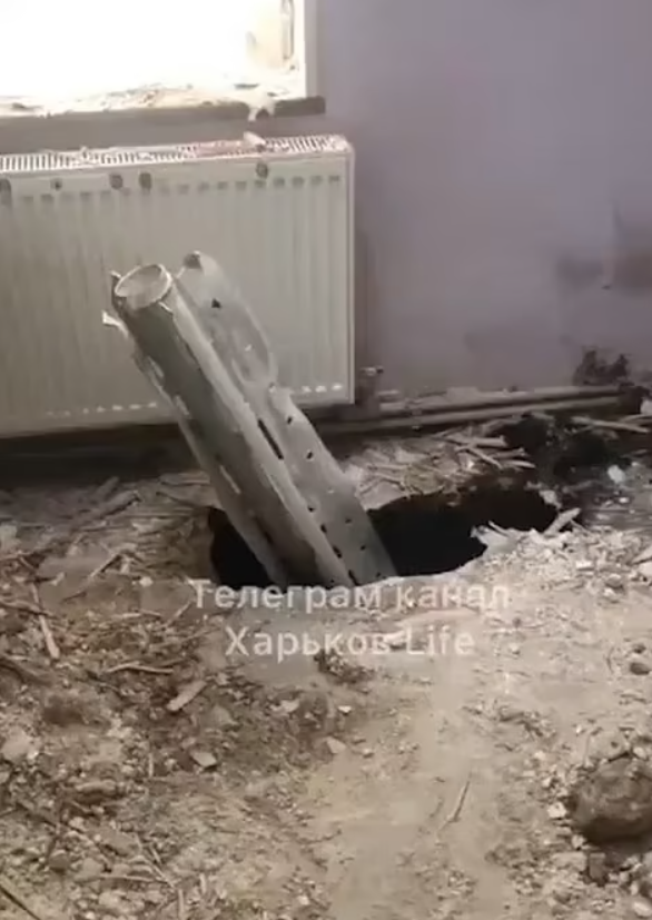 被俄罗斯火箭轰炸后乌克兰东部哈尔科夫一座公寓楼的地板。来源:每日邮报