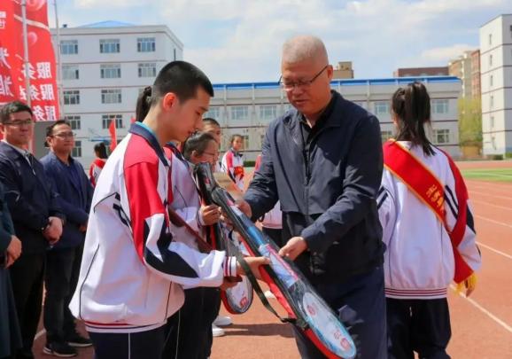 在室外活动中,通过旱地龙舟游戏,激发同学们对活动的参与热情,随着老师一声令下,同学们提着龙舟,迈着整齐的步伐,冲向终点,尽情享受活动的美好。机关党员干部及志愿服务者的参与,更是点燃了游戏的气氛,通过热闹欢乐的游戏,让同学们更加了解彼此,不仅增进了默契,养成了合作的好习惯,而且强化了合作共赢的意识,同学们用青春的活力、运动的魅力,诠释了一首“运动、健康、快乐”的阳光校园之歌,赛后由市红十字会副会长和县领导为获胜班级颁奖。