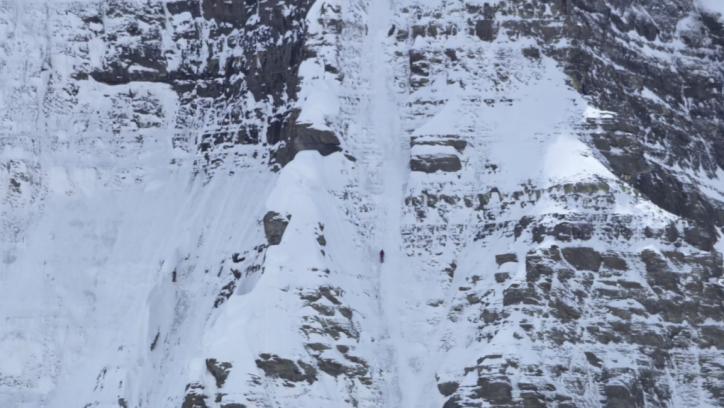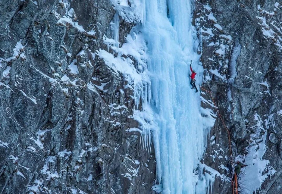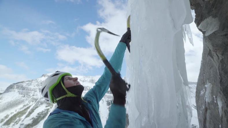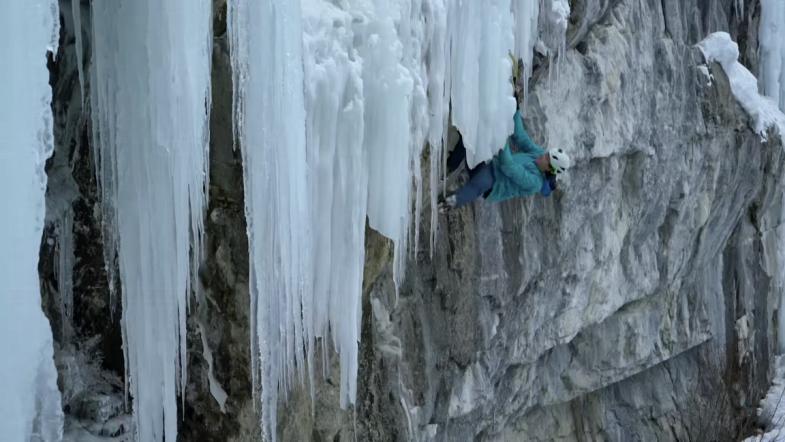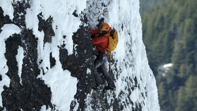 几个月后,Peter 跟随Marc 来到洛基山脉,参加世界著名的攀冰比赛,与坚固的岩石不同的是,悬挂在山崖上的冰瀑布状态并不稳定。更令人惊讶的是,Marc 还会攀爬岩,冰,雪混合路线,其间他使用冰镐钩住岩石,而冰镐同样可以破坏一块岩石,所以这需要极其精湛的技术。