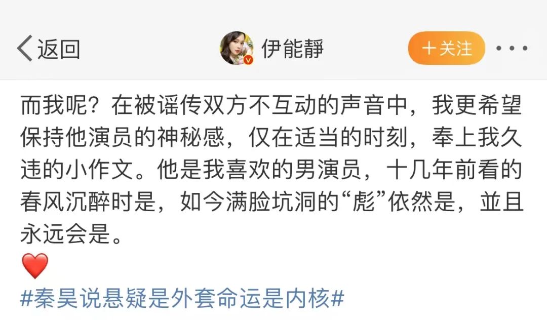 但正是通过那些与伊能静相处的细节,人们看见了一个完全不一样的秦昊。