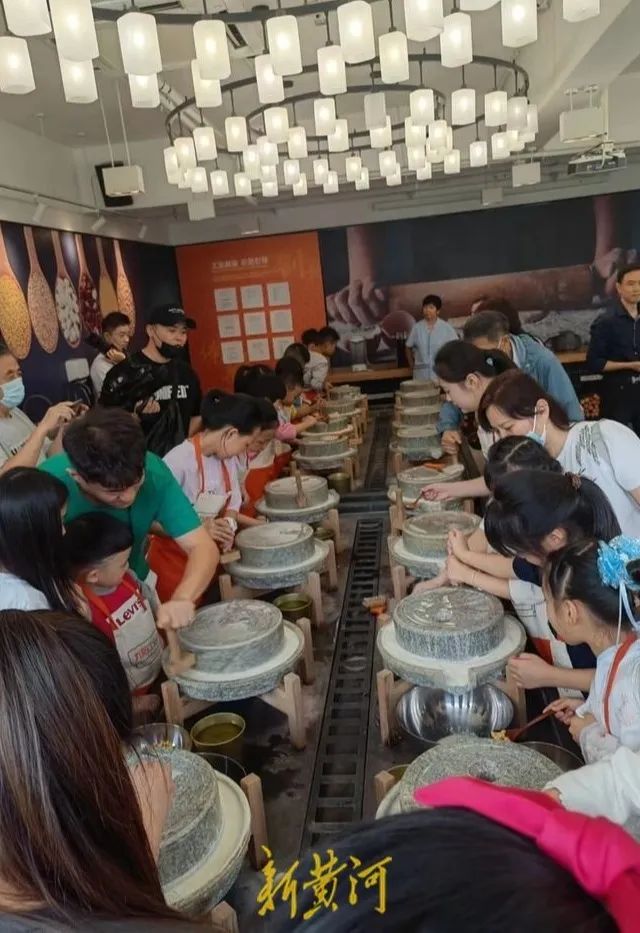 探索“前世今生”:世界上第一台全自动家用豆浆机源自济南九阳科普教育基地始建于2019年,依托九阳总部创意产业园规划建设,基地通过厨房将健康饮食和食器结合,将九阳的企业文化、饮食创意、健康理念等内涵深度建立联系,通过极其有意义的科普课程让每位来访的市民都有所收获。目前基地占地总面积约3500平方米,分别包括文化展厅、Cooking Studio、磨吧(古法磨豆浆)、智慧工厂等科普教育场地,开展参观、演示、体验等不同形式主题的科普内容。