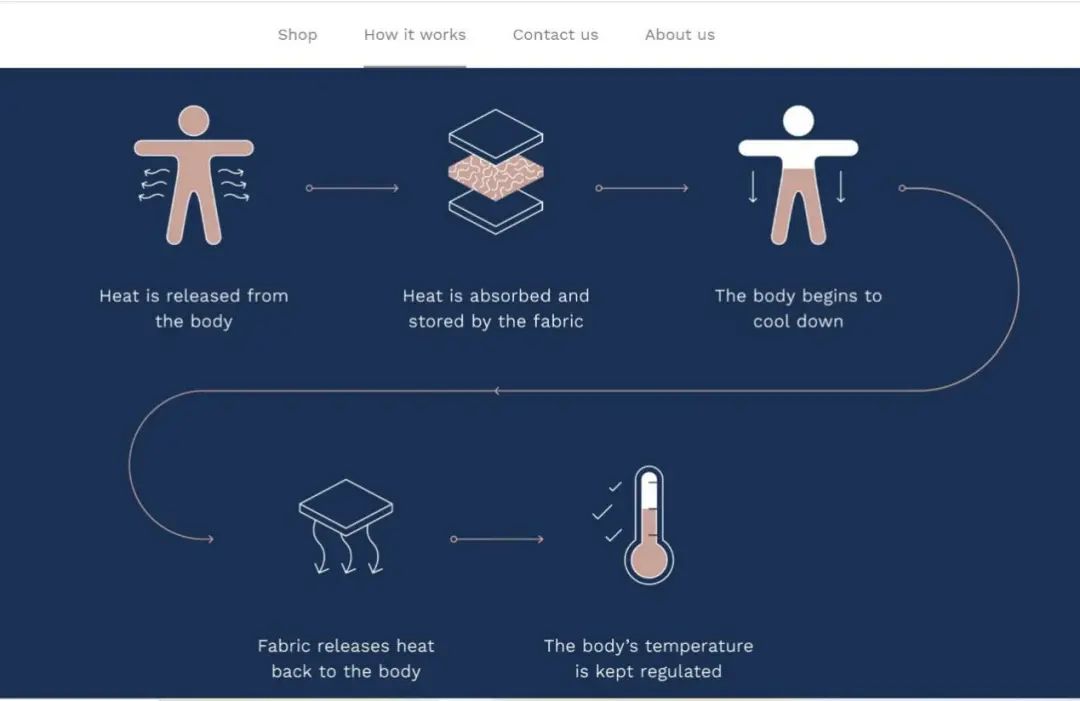 Become称其面料采用了享有专利的“抗潮热科技”(Anti-Flush Technology),这种材料能够在皮肤表面温度升高时吸收热度,并在之后皮肤降温时将热度释放。据介绍,其独特的纺织技术与专利纱线可以使其内衣持续蒸发水分,快速散热。