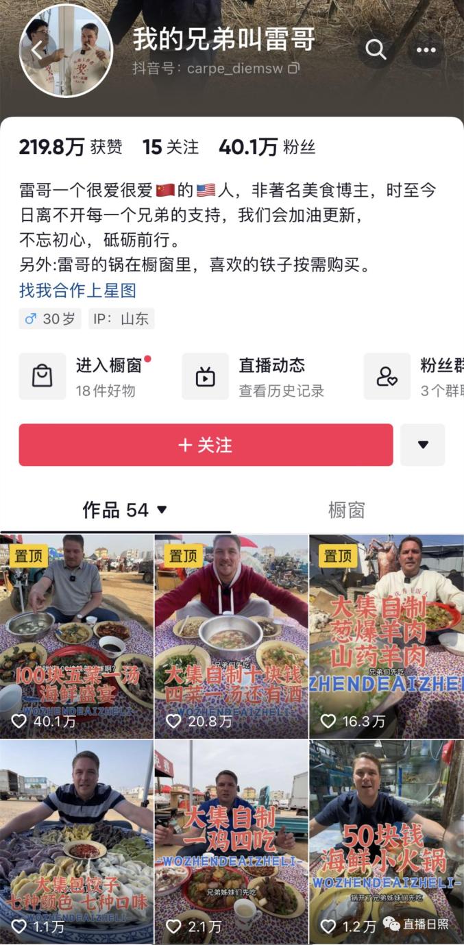 2007年,雷哥辞去工作,开始自主创业,从事外贸工作。出于兴趣,去年12月份开始,雷哥和他的朋友们初次尝试拍摄视频,没想到一条赶大集的视频让雷哥走向了大众视野,被越来越多的人喜欢。不到半年的时间,54个作品,粉丝量从0涨至40万,单条视频最高浏览量超过2300万。