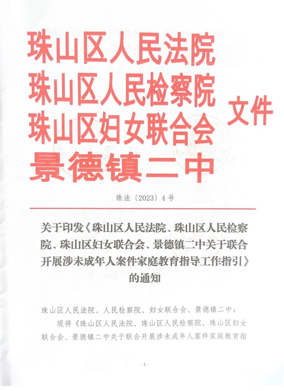 珠山法院一直高度重视未成年人保护工作,本年度联合区检察院、区妇联、景德镇二中制定《关于联合开展涉未成年人案件家庭教育指导工作指引》,致力于凝聚合力推动落实家庭监护主体责任,优化未成年人家庭成长环境。