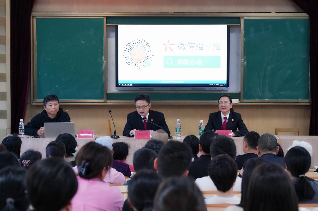 同时推介了珠山法院重点打造的“珠联必合”一站式家事纠纷联合调解服务平台,介绍可以在小程序中申请家事调解、心理咨询、法律援助、家庭教育指导等多项服务,现场家长纷纷自发扫码关注。