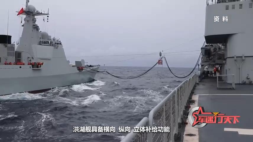 洪湖舰,则是新型远洋综合补给舰。