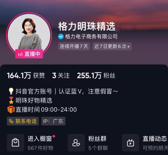 “新人”的效果也同样不理想。根据蝉妈妈提供的预估数据,“格力明珠精选”近一个月的销售额在1000万到2500万之间,就算按照最高额2500万计算,这个直播间一年的销售额才3亿。