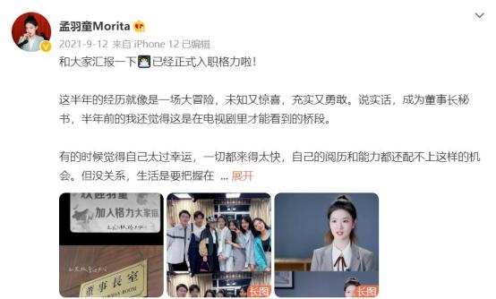 格力方面也不藏着掖着,直接回应:“孟羽童已离开,不在公司任职”,并表示人员流动很正常。