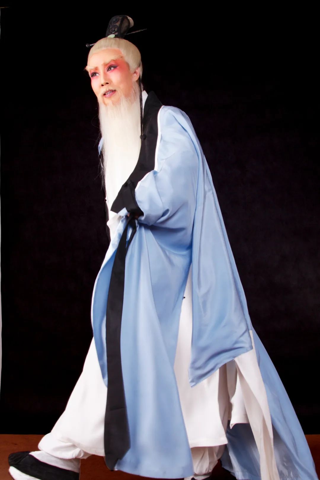 都说隔行如隔山,旦和生的走路姿势、发声位置都各不相同,相当于重新开始。但谢涛依然选择在空闲时穿上厚底靴、戴着髯口,苦练须生的基本功。