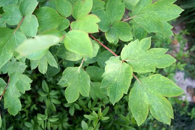 通过茎来区分这两者是十分容易的,但若因为一些特殊原因,看不到它们的茎,(比如拍 照时,没将茎拍进画面中),这时又该如何区分它们?其实,牡丹和芍药在叶子上也有很大的不同。牡丹的叶片比较宽大,呈扇形或鸭掌形,前端有分裂,正面是绿色略带黄色的,无毛;背面有白粉。而芍药的叶片比较狭长,呈羽状或鸡爪形,完全分裂,正反面均为浓绿色,并且有蜡质光泽。