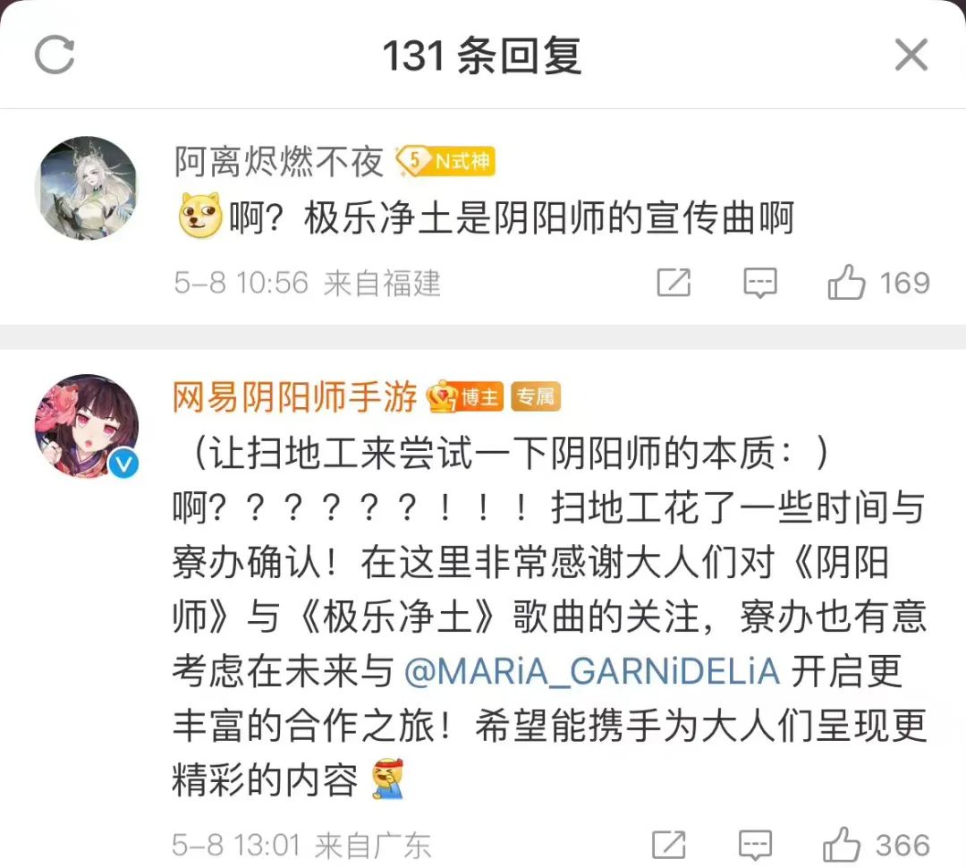 虽然不少《阴阳师》老玩家都在首页打出了“啊?”,表示从未听说过这个合作,但美依礼芽所属组合GARNiDELiA此前在官方微博发布的海报就有如此描述 “作为NetEase公司游戏「阴阳师」宣传单曲的《极乐净土》,以亚洲圈为中心获得了爆发的人气。”