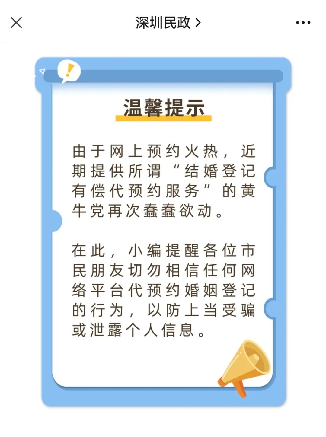 近日,深圳市民政局发文提示称,5月20日,深圳市婚姻登记机关全天上班为市民办理结婚登记,同时呼吁广大新人理性看待婚姻登记“好日子”,避免“扎堆登记”。