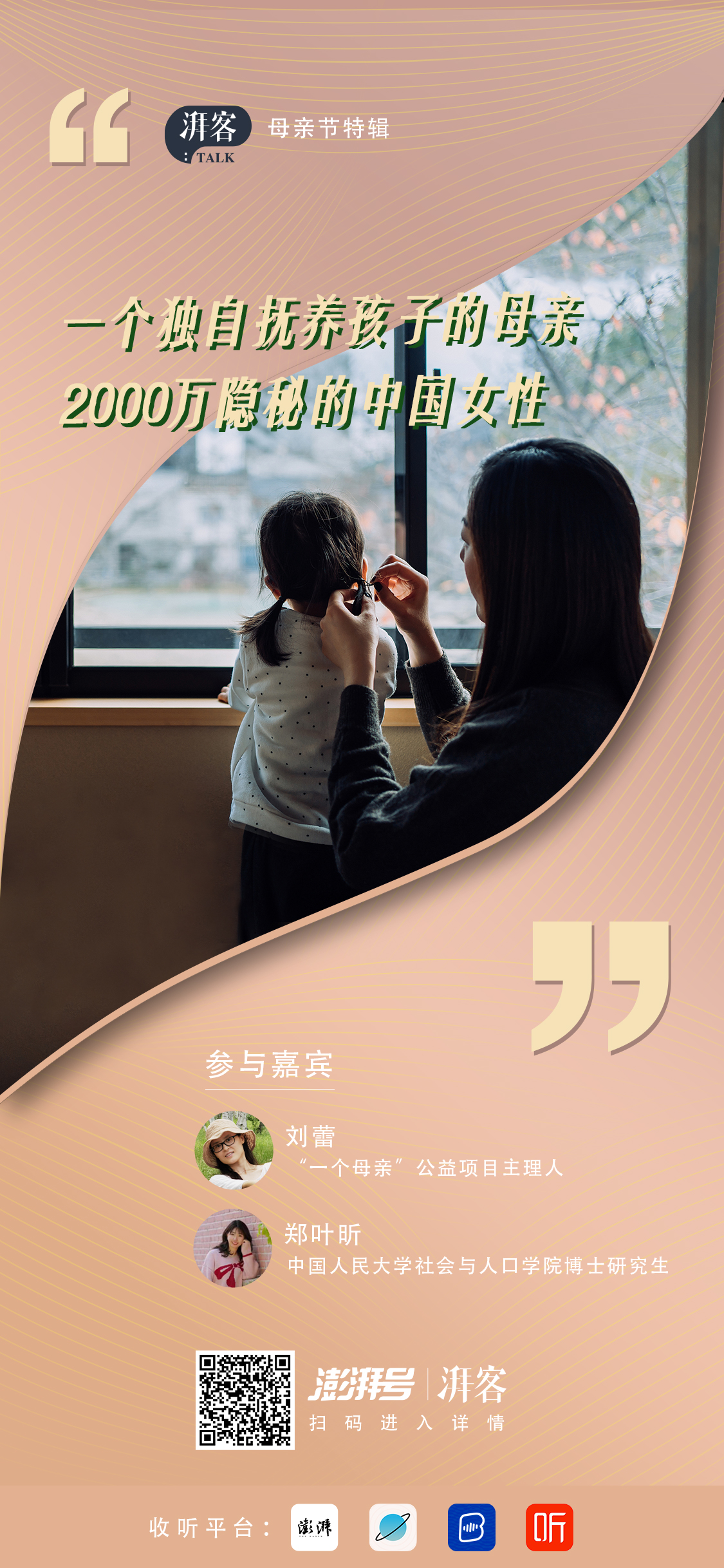 5月14日母亲节,《湃客Talk》邀请了两位嘉宾,一起聊聊“独抚母亲”的话题。