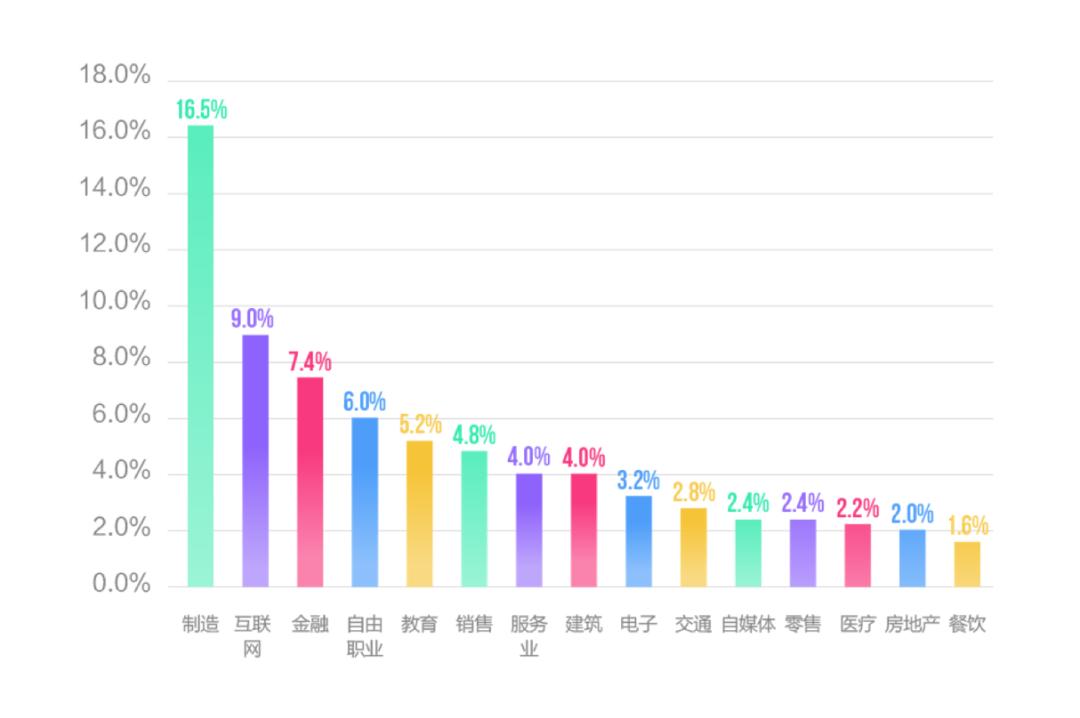 【解读】:当下的网络创作者以公司职员和自由职业者为主,也包括了广大的学生群体。从行业来看,网络创作者遍布各行各业。从制造业,到互联网,金融等等高新行业的人才都参与到网络创作中。图表11:网络视听内容创作者行业分布