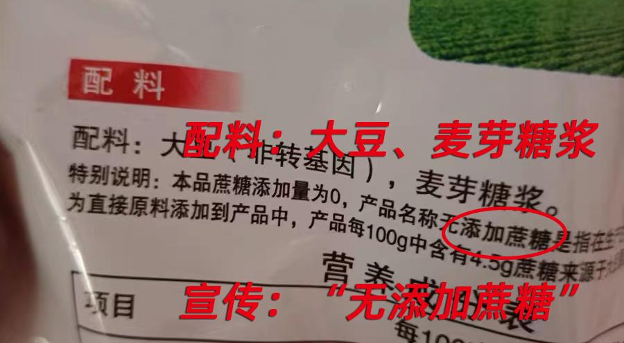 如果买速溶豆浆粉,留意看配料表,不要因为某款豆浆粉宣传”无蔗糖“,就觉得它一定适合糖尿病人。