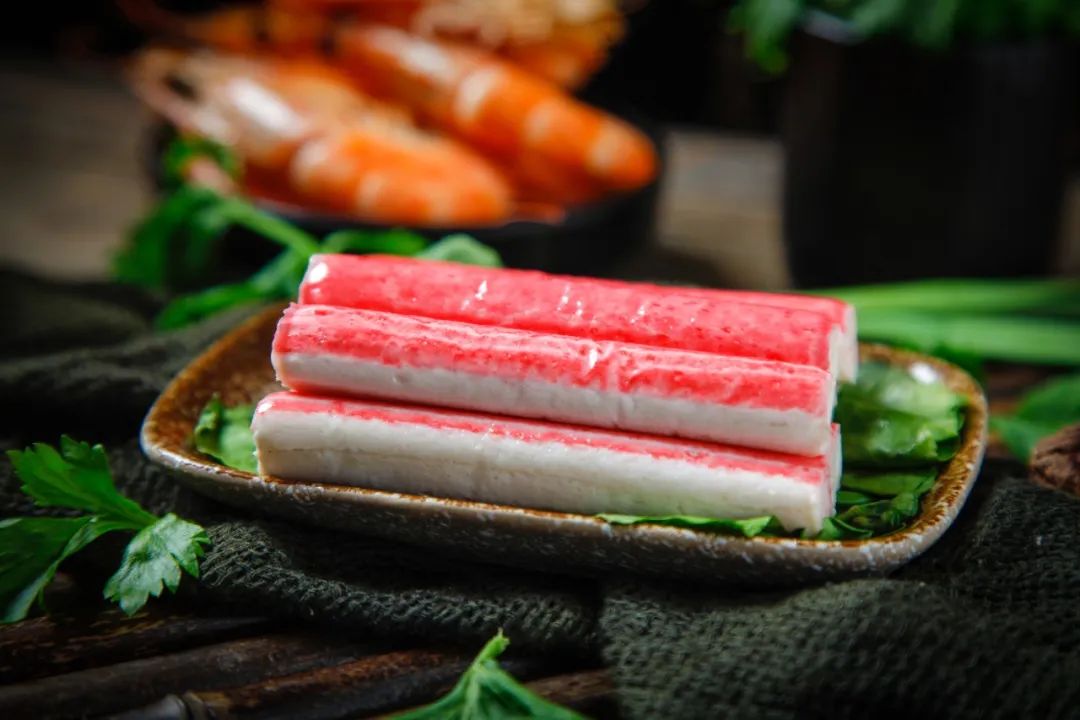 其实蟹味是香精的功劳,你看到蟹肉棒外表的这个红色,其实也是食用色素的功劳,例如胡萝卜素、红曲色素等,用来模仿蟹肉的颜色。