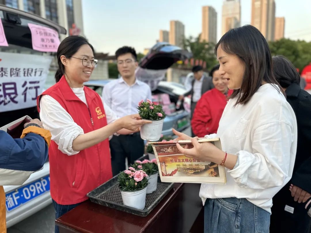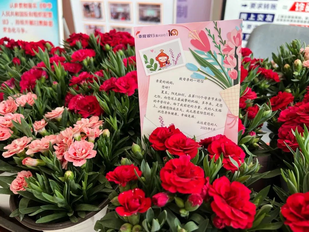 5月8日,近万盆康乃馨送到嘉兴泰隆大厦,泰隆银行积极行动,第一时间联系各县市区妇联、嘉兴市96345志愿者服务总站、南湖区民政局等单位将这份祝福送给辛劳的母亲们。