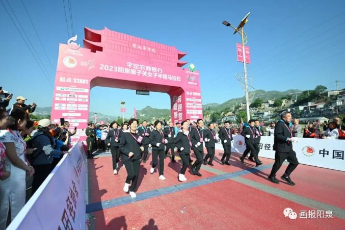 平定农商银行·2023阳泉娘子关女子半程马拉松在山西省阳泉市平定县娘子关成功举办中国田径协会副主席杨培刚,阳泉市委副书记、市长刘文华,山西省体育局副局长杜荣,山西省总工会一级巡视员、金融工委主任韩丽珍,阳泉市委常委、平定县委书记李明,阳泉市委常委、市委秘书长、宣传部长杨建军,阳泉市人大常委会副主任唐麟,阳泉市政府副市长句爱云,阳泉市政府副市长、公安局长米炳生,山西省妇联二级巡视员邰三亲,中国田径协会执委、中迹体育董事长张思杰,山西文旅集团副总经理、山旅集团党委书记、董事长郭凯,山西省联社工会主席马志宝,山西省体育局全民健身处二级调研员刘双月,山西省田径协会冯海亮等出席开幕式。 出席开幕式的还有中田体育、山西省体育局、山西省田径协会、阳泉市政府、山西文旅集团、阳泉市体育局、阳泉市妇联、中共平定县委、平定县人民政府等主办单位及承办单位相关负责人。