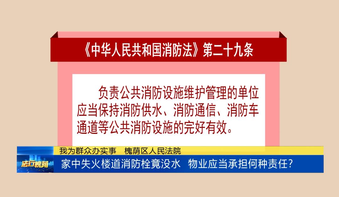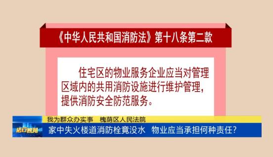 原标题:《法行槐荫|家中失火楼道消防栓竟没水 物业应当承担何种责任?》