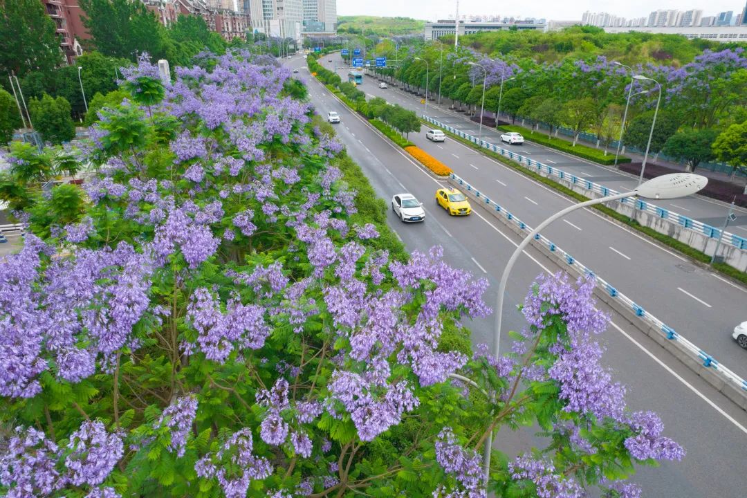 在两江新区庐山大道,紫色的花朵缀满了高大的树冠。邹乐 摄