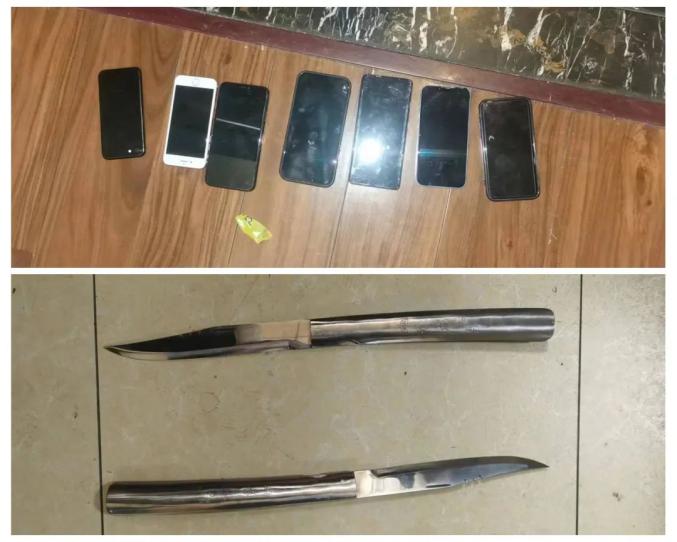 “跑分车队”每天都会产生巨额流水。为尽快斩断电信诈骗的黑色产业链条,挽回受害人损失,池州警方充分整合警种资源,采取线上研判和线下蹲点摸排等方式全力开展抓捕。3月4日凌晨1时许,在上级公安机关及成都当地警方的大力协助下,专案组抓获“跑分车队”的龚某、李某、李某某、陈某等其他4名成员,后根据掌握的线索将6名涉嫌帮信罪的卡主同时抓获,缴获作案手机8部,刀具3把。