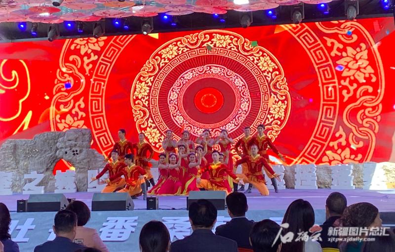 5月7日,“甜蜜之城吐鲁番 满城摇落桑葚雨”2023吐鲁番桑葚节开幕式上,歌舞表演精彩纷呈。石榴云/新疆日报记者萨日娜摄本届桑葚节由吐鲁番市旅游管理委员会主办